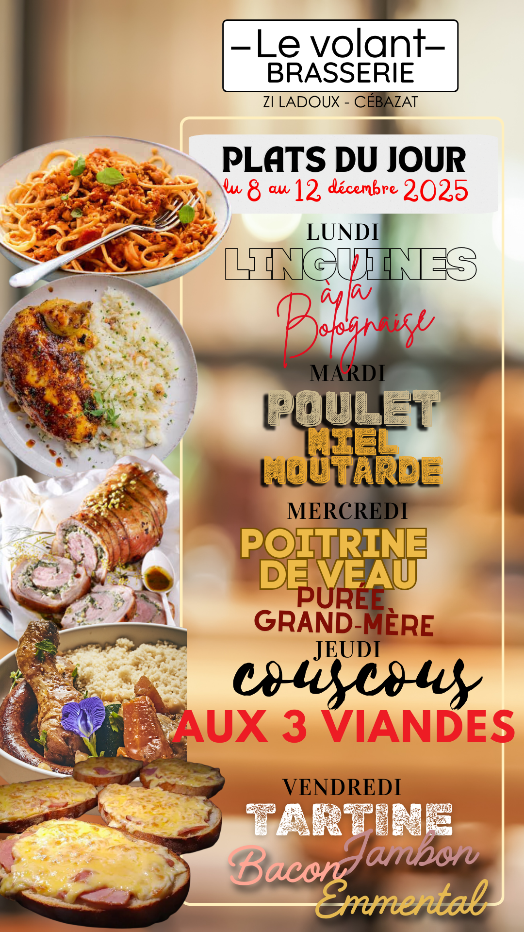 Consultez la carte de nos plats à déguster sur place dans notre restaurant à Cébazat